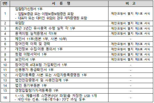 가. 제안서 작성제출에 따른 비용은 입찰자 부담으로 하며, 제출된 서류는 일체 반환하지 않음