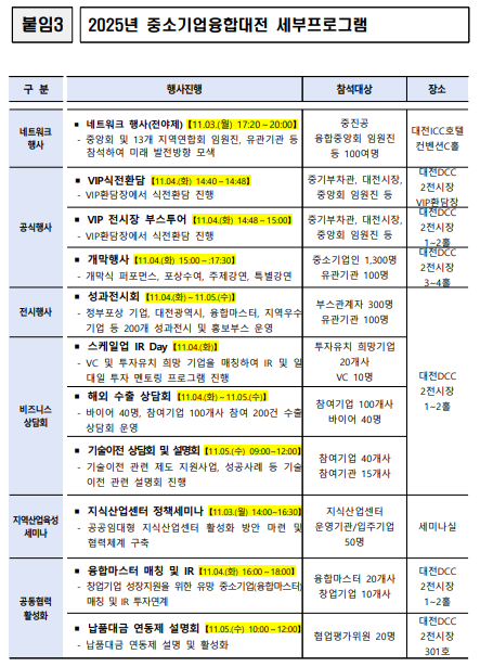 - 251104_“융합과_혁신으로,_중소기업의_미래를_열다”_「2025_중소기업_융합대전」_대전에서_개최지역혁신정책과.pdf (480.5K) 2회 다운로드 | DATE : 2025-11-05 10:30:56