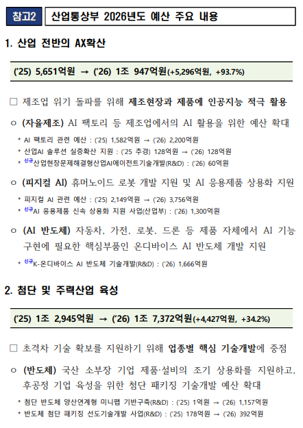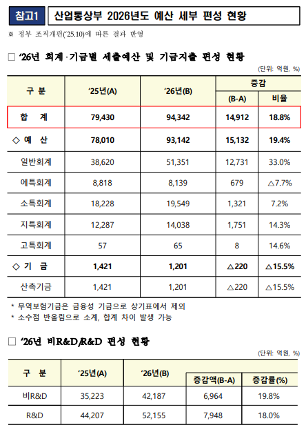 | 제목 | (참고자료) 2026년 산업부 예산 9조 4,342억 원 확정 |