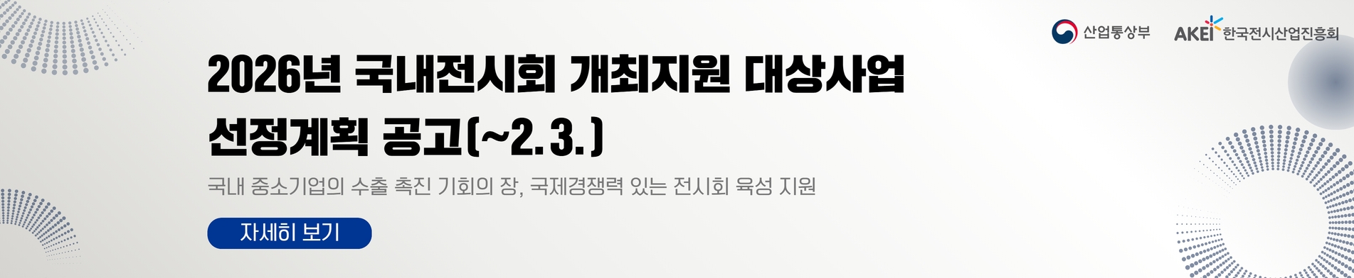 주한외국공관초청설명회 | 산업통상부 중소벤처기업부 소상공인시장진흥공단 | 전시장 온라인 등록시스템 전시UP 전시산업 구인구직 전시회 정보포털 쇼알라 GEP글로벌전시포털 전시장안전관리교육시스템 한국전시디자인연감 전시산업 인력양성 및 교육 |