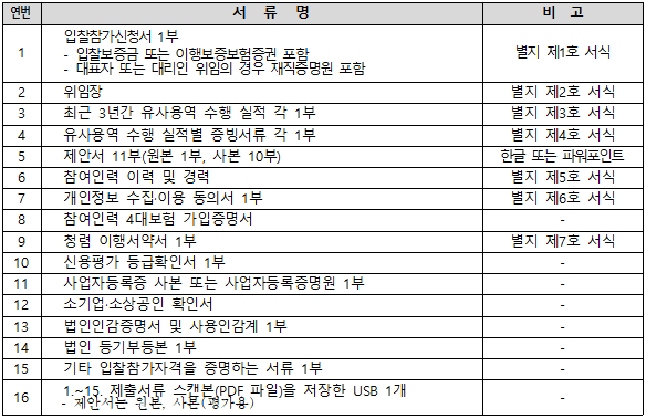 가. 제안서 작성제출에 따른 비용은 입찰자 부담으로 하며, 제출된 서류는 일체 반환하지 않음