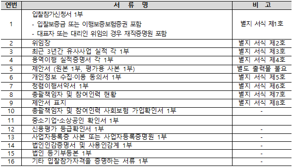 가. 제안서 작성제출에 따른 비용은 입찰자 부담으로 하며, 제출된 서류는 일체 반환하지 않음