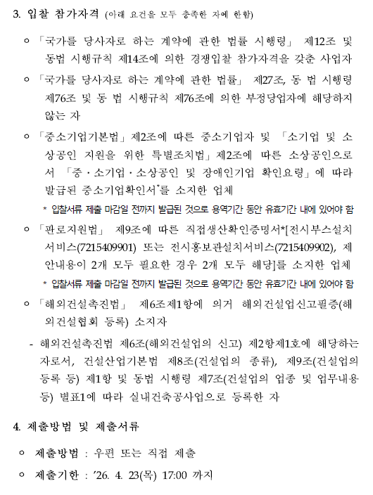 - 다음글[진흥회] 2026년 전시산업 통계조사 용역 입찰 공고 26.04.06