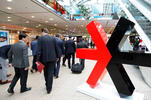 * EuroCIS 2016 현장. EuroCIS 로고와 방문객이 보인다
