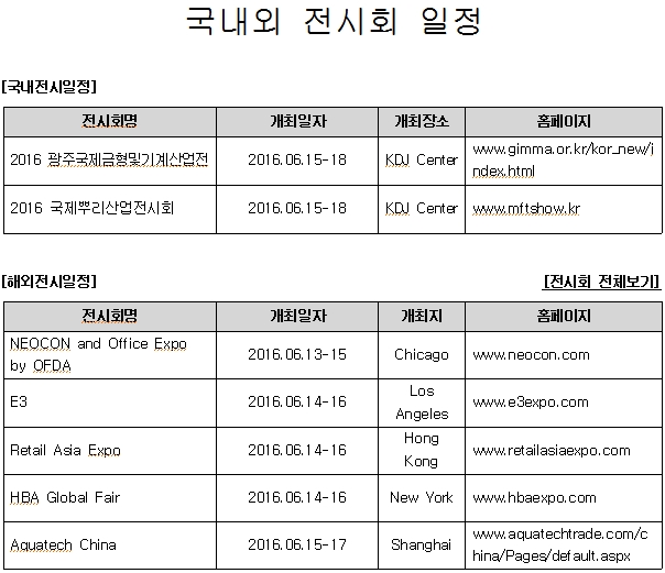 [안내](진흥회) 2016년 6월 3주 전시회 일정 안내