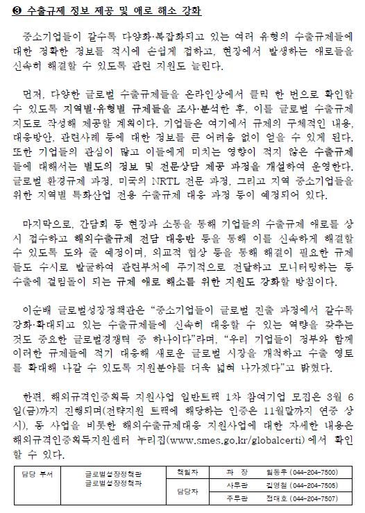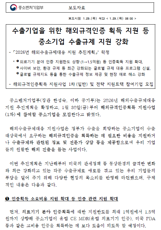 - 260129_’수출기업을_위한_해외규격인증_획득_지원_등_중소기업_수출규제_지원_강화글로벌성장정책과.pdf (246.5K) 0회 다운로드 | DATE : 2026-01-30 10:29:49